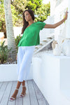 Our Cora is gorgeous one shoulder top with green tone! Brighten the room instantly with this amazing pop of colour. This style top is so versatile and can be paired back with your fave denim jeans or leather skirt!