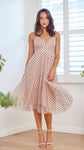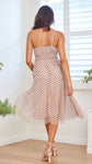 Polka Mesh Midi Dress-Pink